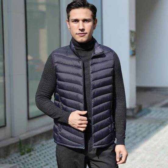 Men's vest is crafted from soft and breathable polyester fiber, ensuring comfort and warmth. The zipper closure allows for easy wear.