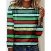 Women's T Shirt Crew Neck Long Sleeve Tunic Cat Striped Casual Regular Tops Daily Print Black Green Spring Fall MAO