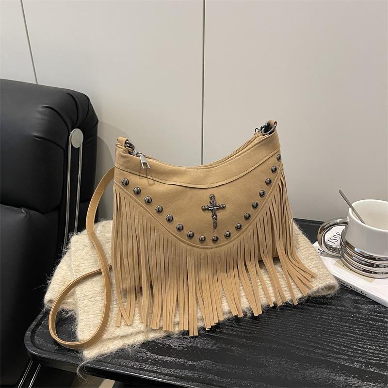 Fashion Rivet Tassel Punk Bag Women's New Autumn Popular Versatile One Shoulder Crossbody Underarm Bag