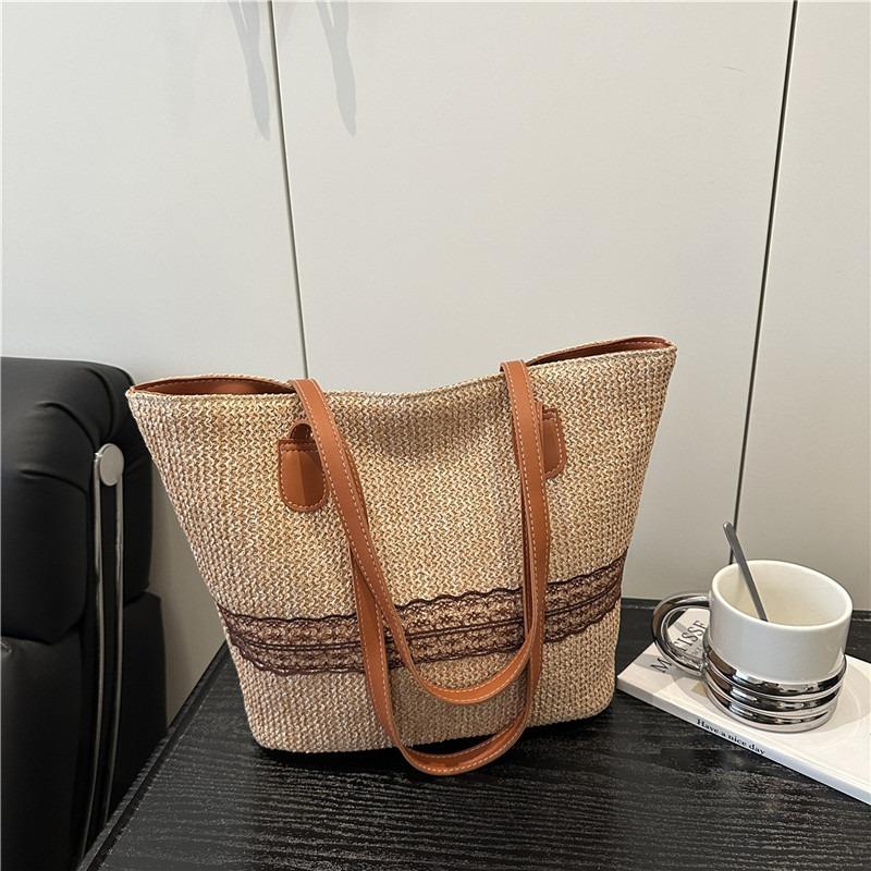 Summer Fashion Simple Tote Bag Large Capacity Bag Messenger Bag Women's Casual Woven Portable Shoulder Straw Bag