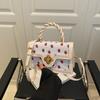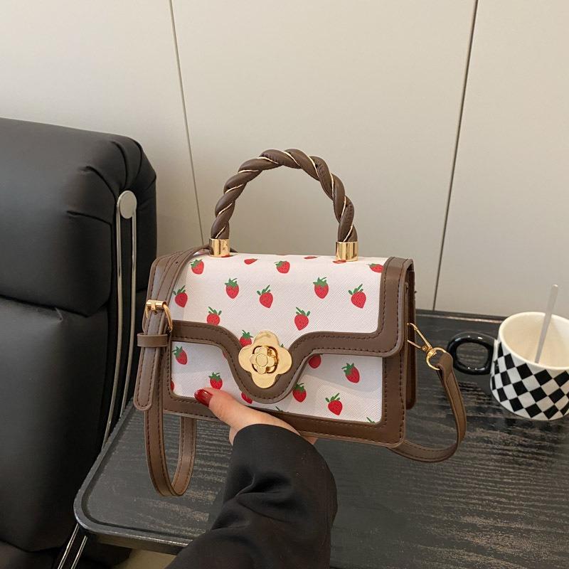 Little Cherry Printed Shoulder Bag Women's New Twist Portable Small Square Bag Fresh Contrast Color Design Messenger Bag