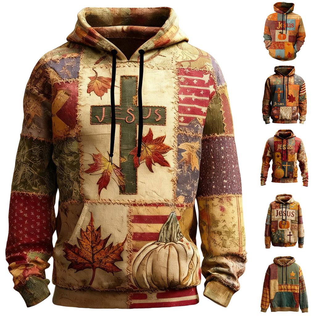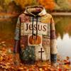 Men's Retro Casual Cross Art Print Oversized Drop-Shoulder Pockets Hoodie