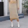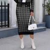Women's Skirt Lady Temperament Skirt Mid-length Hip-pack Elastic Waist Stretch Plaid Sweater Skirt
