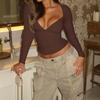 Y2K Sexy Deep V Long Sleeve Women's Vest T-shirt 2025 Autumn and Winter