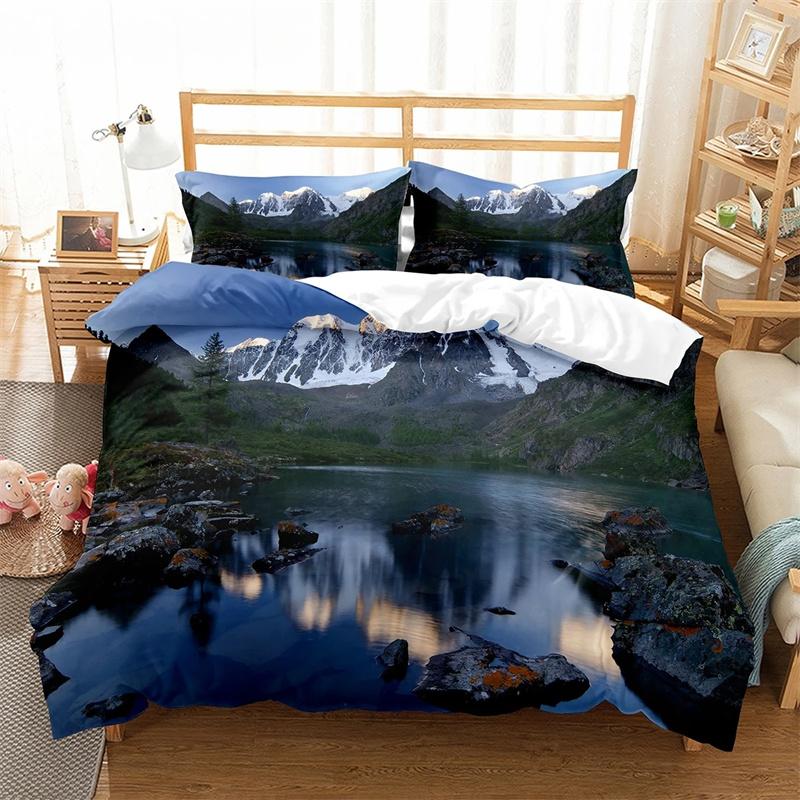 Altai Mountains King Queen Duvet Cover Natural Landscape Bedding Set Forest Lake Scenery Quilt Cover Polyester Comforter Cover