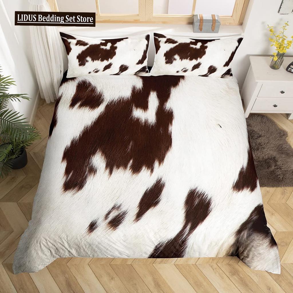 Animal Fur Pattern Duvet Cover Set Tiger Lion Cow Leopard Polyester Comforter Cover With Pillowcase King Queen Size Bedding Set
