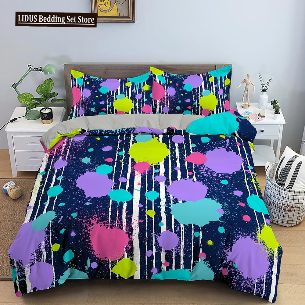 Art Pattern Bedding Set Watercolour Design Colourful Comforter Cover With Pillowcase King Queen Size For Kids Teens Bedding Set