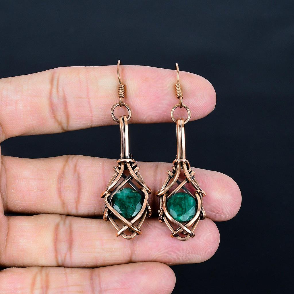 Emerald Pendant, 999 Copper Wire Wrapped Pendant Gemstone Jewelry, Handmade Pendant Amazing Jewelry, Gift For Her