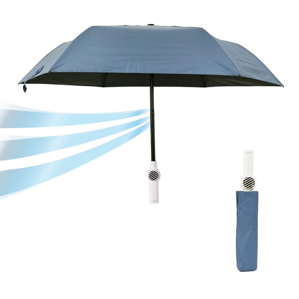 THANKO Compact, Large, Lightweight Parasol for Sun and Rain [Official] "Fanbrella POLE" TKFA25S - Cool Parasol with Fan for Shade and Cool Breeze! This two-in-one folding parasol with a fan keeps one hand free.