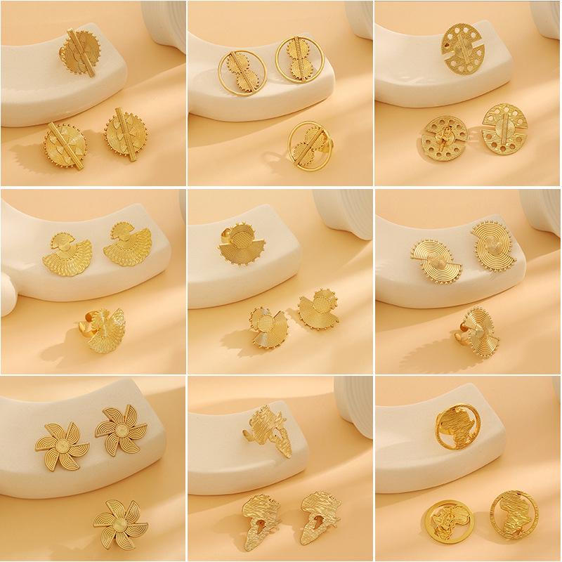 Exaggerated Geometric Metal Earrings: Irregular Fan-Shaped & Round Hollow Design (2-Piece Set)