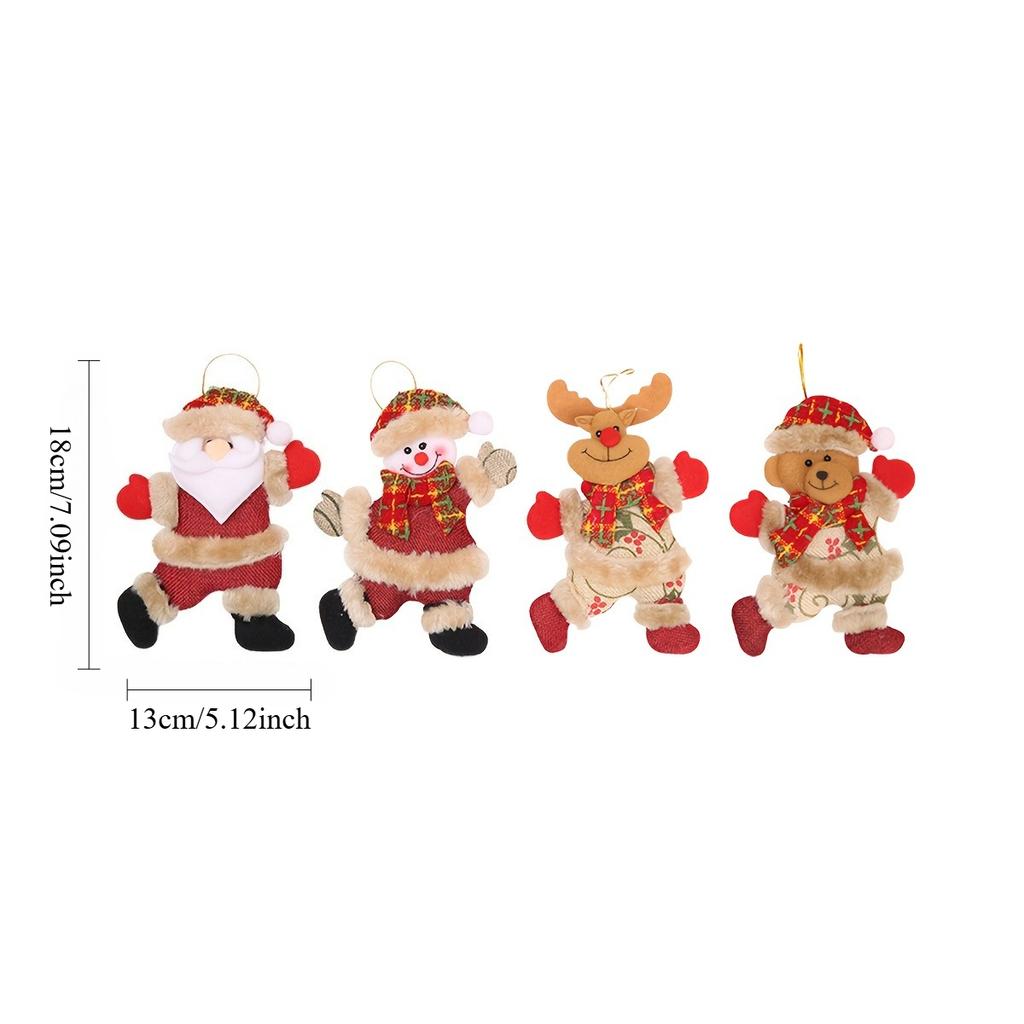 4/8pcs Festive Christmas Tree Ornaments -Santa,Snowman,Reindeer & Bear Figures with Red & White Scarves,Golden Balls & Red Bows
