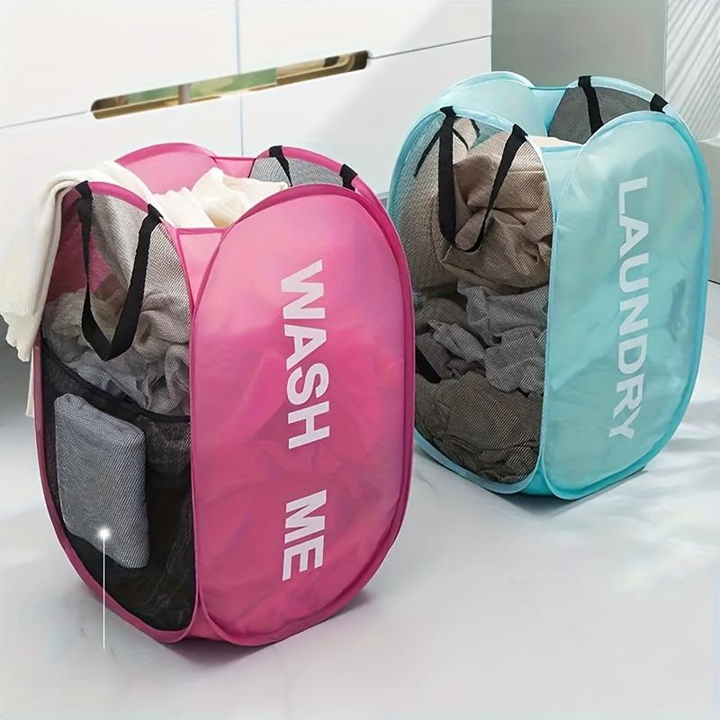 Foldable Laundry Basket with Handle - Foldable Mesh Fabric Laundry Basket, Space Saving, Suitable for bathrooms,Laundry Baskets