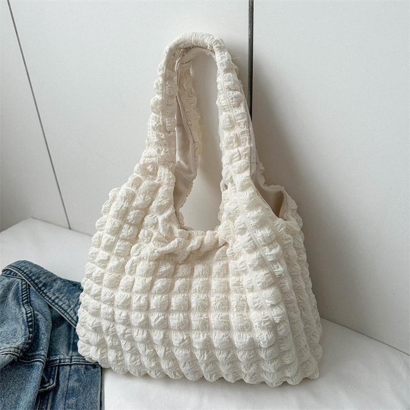 Korean Fashion Cloud Puff Floral Single-Shoulder Bag for Women - 2024 Winter Minimalist Handbag