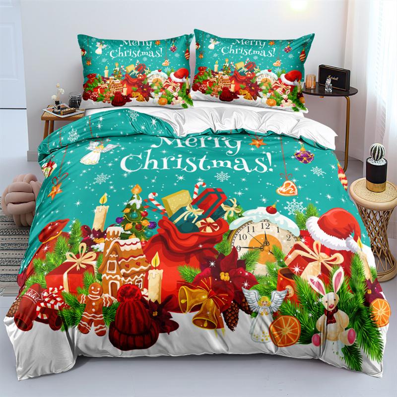 Duvet Cover Set 3D Santa Claus Merry Christmas Single Double Size Holiday Atmosphere Decoration Soft And Comfortable