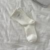 Women's Bubble Lace Embroidered Bow Socks Versatile and Trendy Mid-calf Cotton Socks Ballet Style