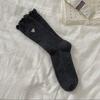 Solid Color Lace Double-stitch Simple and Versatile Embroidered Heart-shaped Mid-calf Pile Socks for Women, College-style Long Socks