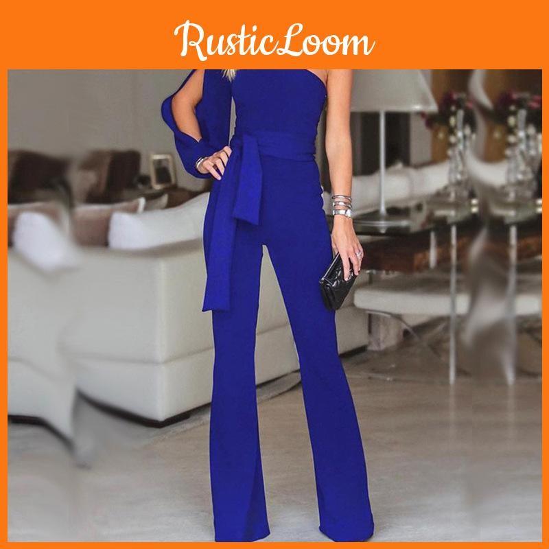 Waist Women Tied Flared Jumpsuits Fashion One Shoulder Sexy Rompers Jumpsuits