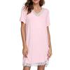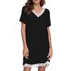 Fashion Ladies Women 'S V Neck Nightshirt Sleepwear Soft Sleepwear Short Sleeve Nightgown Solid Color Dress