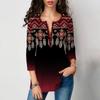 New Trend Women's Fashion Loose Casual 3/4 Sleeved Ethnic Style Floral Printed Folded V- Neck Button Shirt & Blouses Tunic Tops