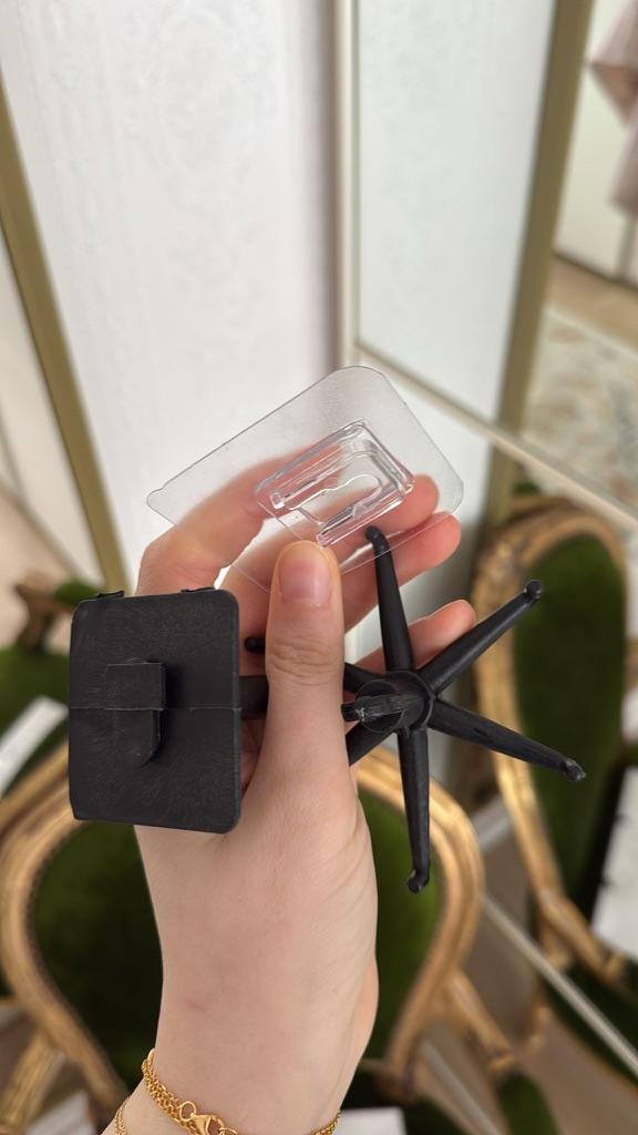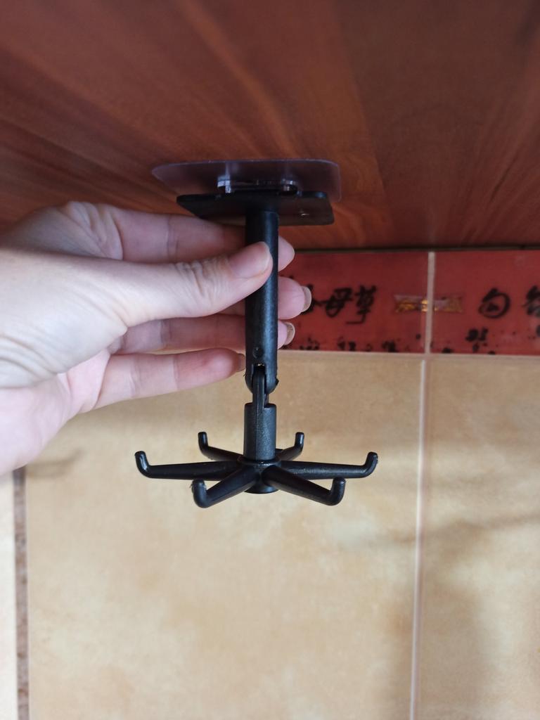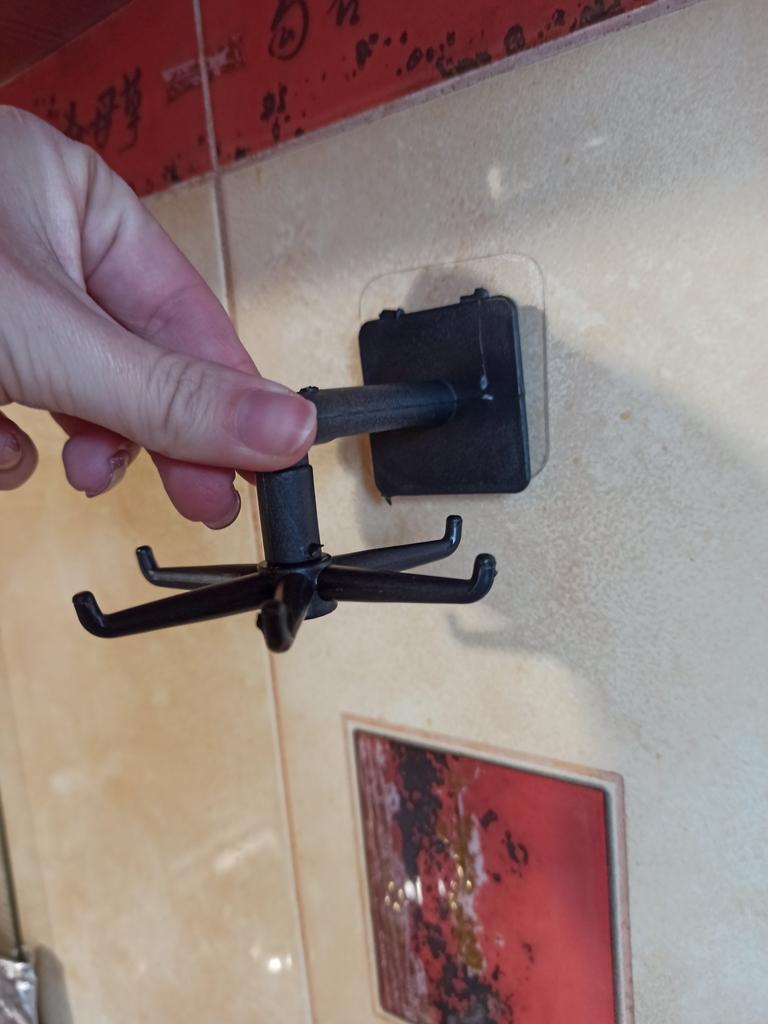 360-degree rotating hook Swivel holder for kitchen utensils self-adhesive - a great solution for any modern kitchen. Advantages: - 360 degree rotation capability - takes up little space and allows you to neatly hang a lot of kitchen utensils - quick installation on a self-adhesive base that provides a secure fastening for a long time Made from durable plastic. Size 7*7.5*11cm. Arrived well packaged, no damage.. Satisfied with the order, I recommend.
