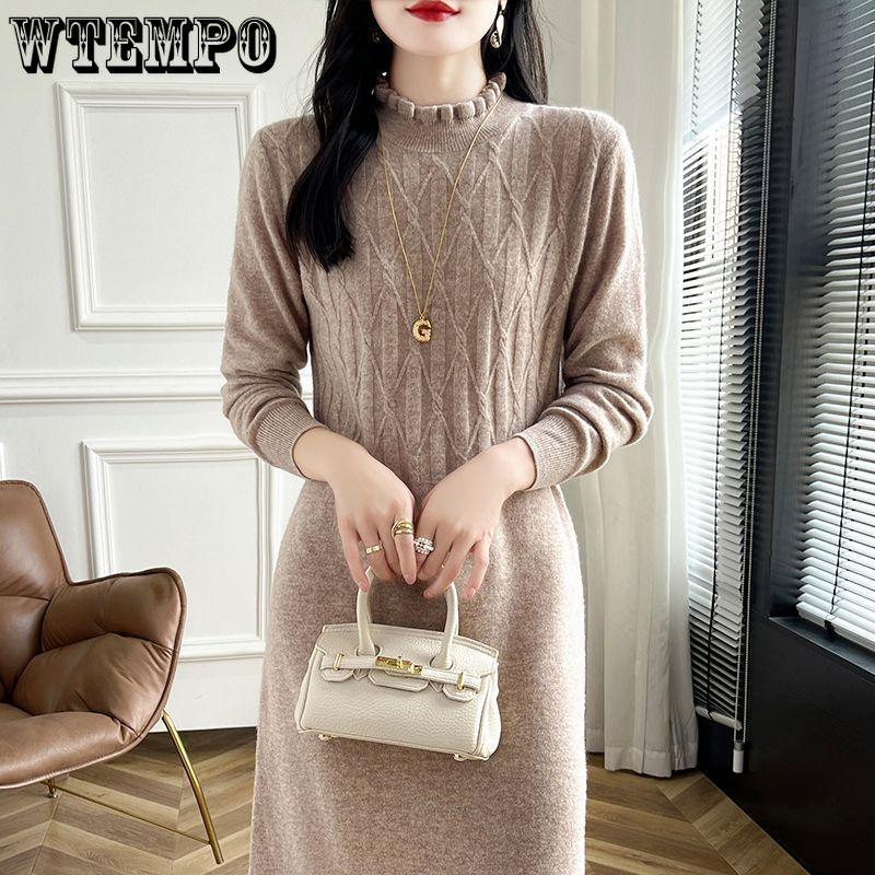Large-sized Half Turtleneck Mid-length Sweater Dress for Women Solid Color Casual Knitted Dress with Loose Knitted Sweater for Autumn and Winter