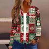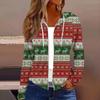 Women's Fashion Christmas Print Casual Zip-Up Long-Sleeved Hooded Jacket