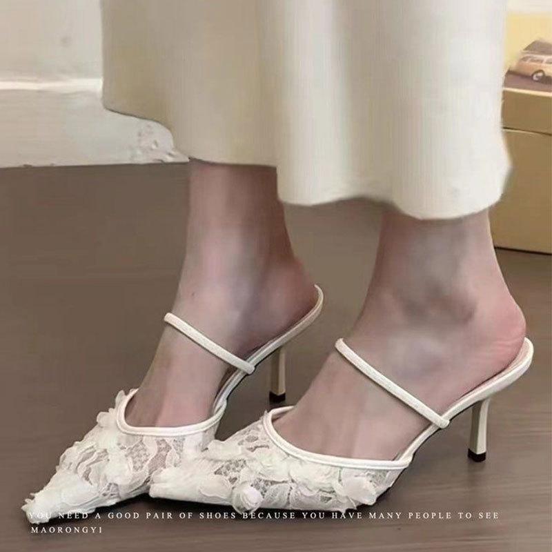 Gentle Evening Breeze Pointed Head with Bag Head Thin Heel Half Slippers Women's Summer Wear 2025 New Mesh Cool Slippers