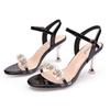 One-word Buckle with Rhinestone Open-toed Sandals for Women's Summer Wear 2025 New Fashion Soft Leather French Stilettos for Women
