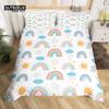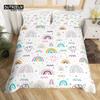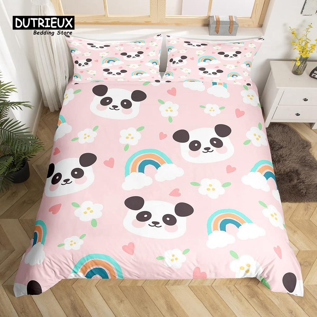 Cute Panda Duvet Cover Set Kawaii Rainbow Cartoon Animals Bedding Set Full Microfiber White Flowers Pink Heart Comforter Cover
