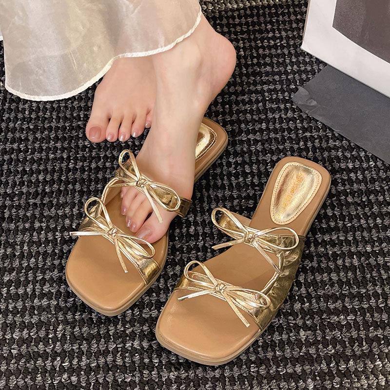 Bow French Premium Slippers Women's 2025 New Summer Korean Version Square Head Versatile Slope Heel Outside Wear Cool Slippers