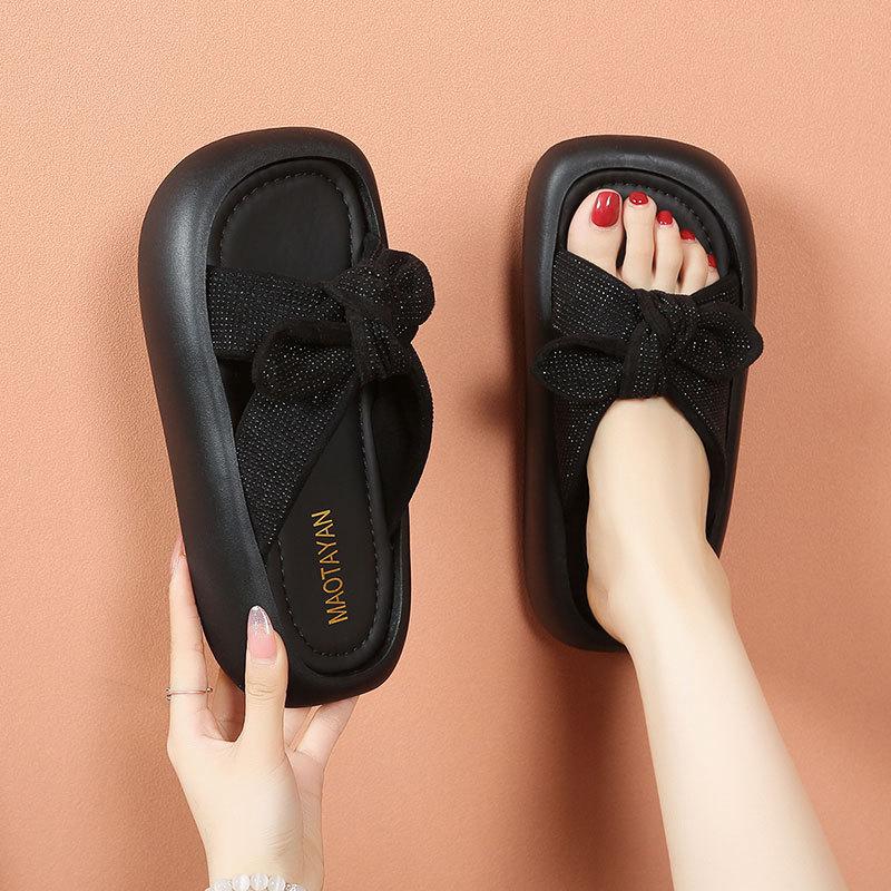 Thick-bottomed Bow One-word Women's Summer 2025 New Fashion Versatile Trend Wear Sandals Casual Slippers