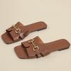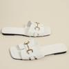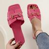 Summer New Outer Wear Metal Buckle Square Head Flat Bottom Slippers Women's Sandals European and American Large Size Slippers Women