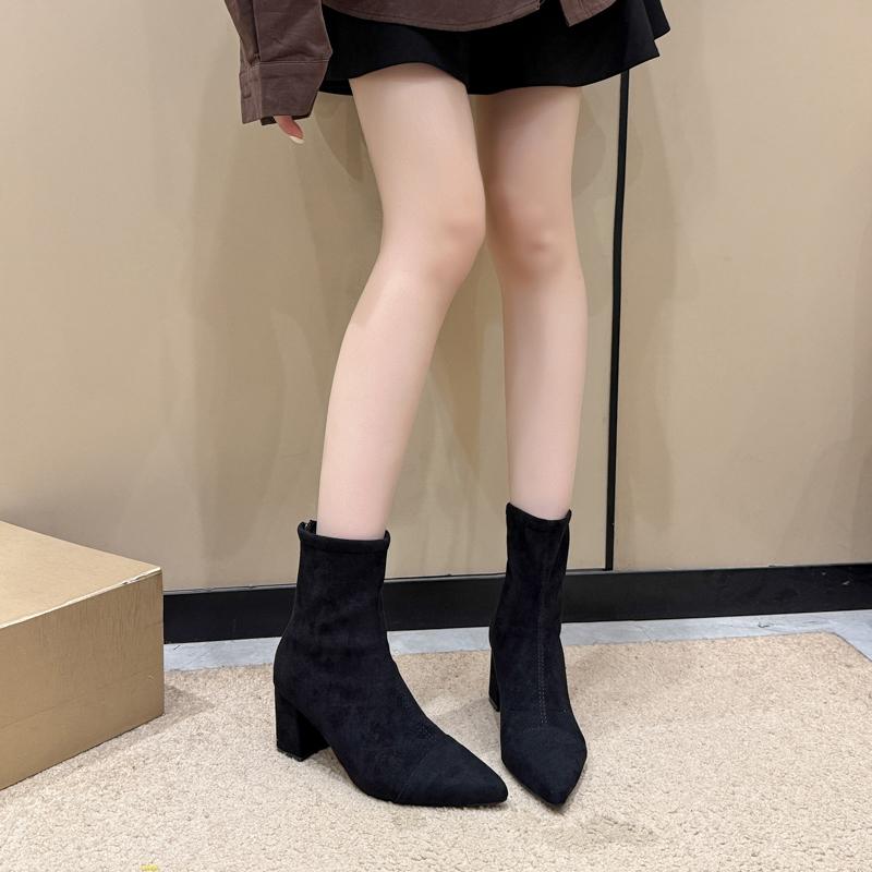 Women Suede High Heels Pointed Toe Ankle Boots Designer Chunky Shoes 2025 Winter New Short Boots Fashion Elegant Zapatos