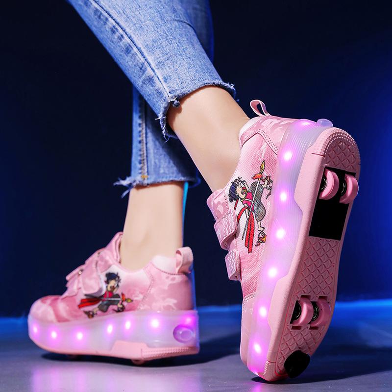 Children's Low-top Four-wheel Roller Skates Luminous with Brake Pads and Wheels Sports Shoes Dual-purpose Skating Casual Shoes