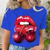 Summer Fashion Women's T-Shirt Lips Cherry 3D Printed Short Sleeve Tops Girl Loose Casual Loose Oversize Outdoor Clothing