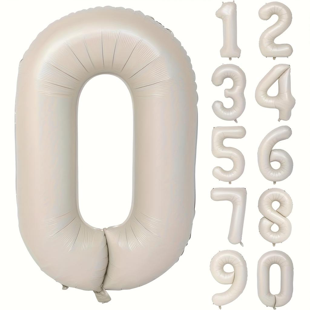 Ivory White Number 0-9 Aluminum Foil Balloon, Birthday Decoration, Anniversary Decoration, New Year Decoration, Graduation Party Decoration Supplies