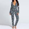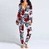 Women's Button-Down Halloween Print Functional Buttoned Flap Adults Jumpsuit