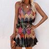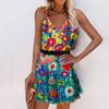 Women Casual Print V-Neck Sleeveless Sling Dress
