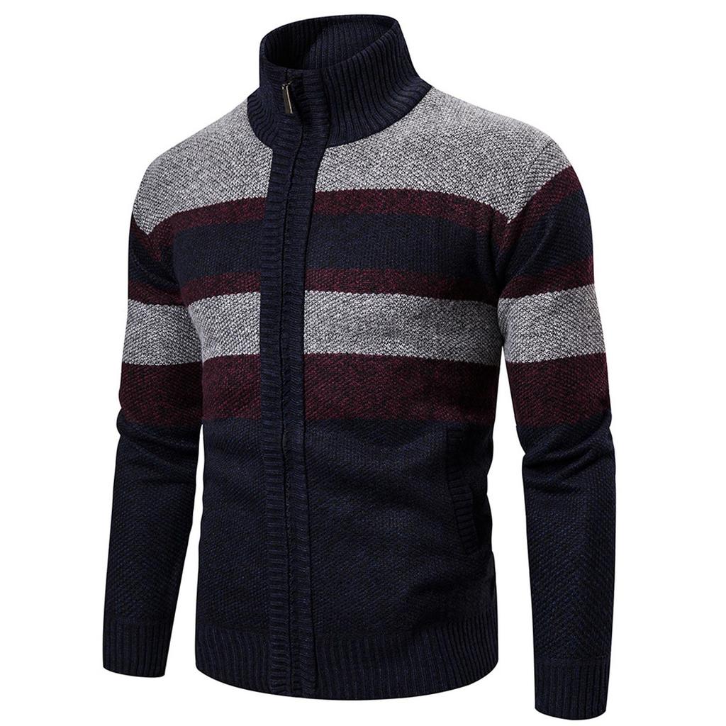 Men's Striped Long Sleeve Knitwear Casual Stand Up Collar Zip Cardigan Jacket