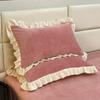 2PCS Winter Milk Fleece Pillowcase Thickened Pair 48x74CM Lace Solid Color Girls Pillowcase