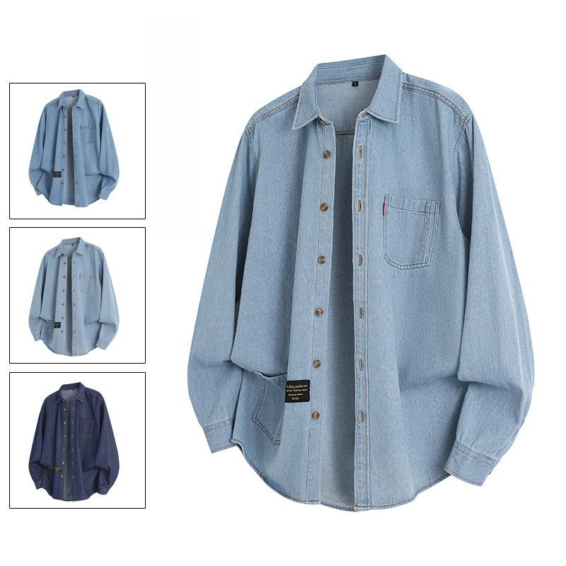 Minimalist Solid Color Men's Long-sleeved Shirt Autumn Denim Lapel Men's Casual Cotton Jacket Jacket Men's Breathable Work Casual Jacket