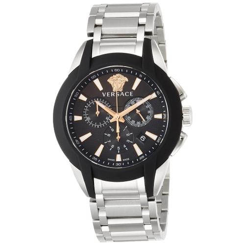 VERSACE Character Chronograph Watch, Black Dial, VEM800218, Men's, Silver