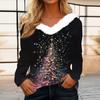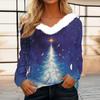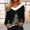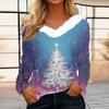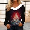 Women's Fashion Long Sleeve Christmas V-Neck Printed Party Furry Top