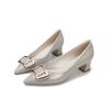 Spring 2025 New Mid-heeled Women's Single Shoes Thick Heel High Heels Patent Leather Red Wedding Shoes Pointed Light Mouth Four-season Shoes