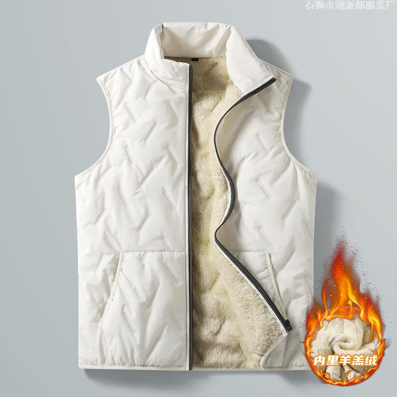 Lamb Wool Cotton Vest Men's Autumn and Winter Stand-up Collar Large Size Velvet Thickened Vest Middle-aged and Elderly Warm Vest Jacket