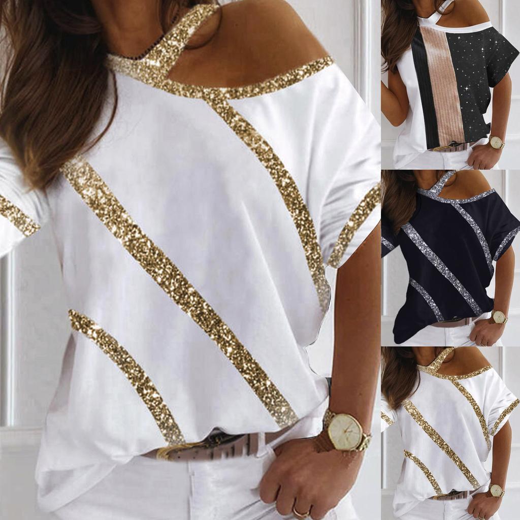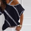 Women's Fashion Print Loose Shoulder Casual Short Sleeve T-shirt Top Blouse
