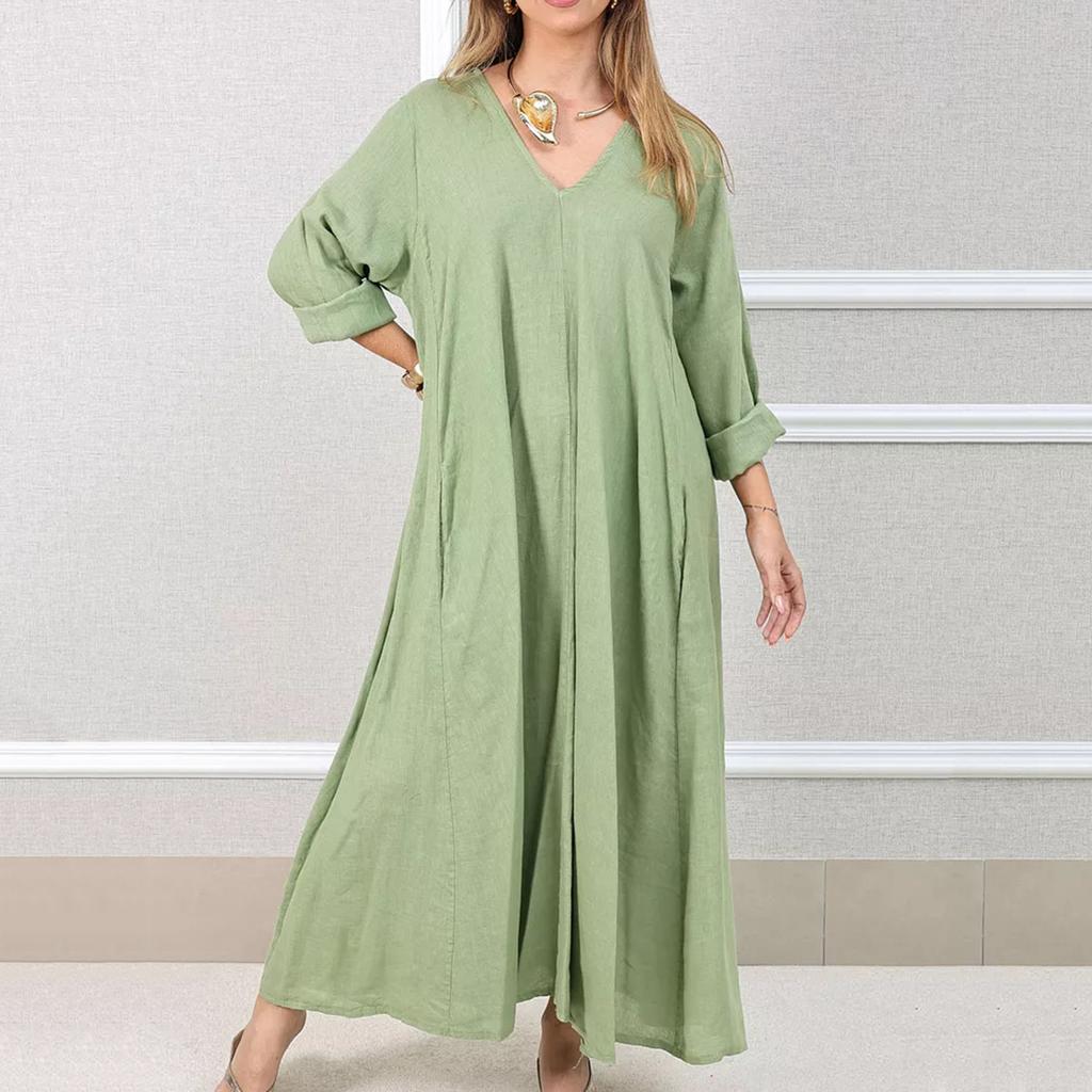 Women's Fashion Solid-color Retro Casual Long-sleeved Dress (without Belt)