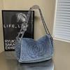 Large Capacity Denim Chain Bag Women's Summer High-end Sense Simple New Portable Tote Bag Armpit Bag Handbag