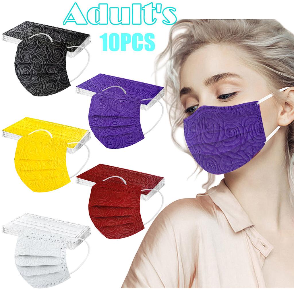 Adult Man Women Rose Embossing Mask Disposable Face Mask Inrial 3Ply Ear Loop 10PCS Mask