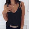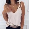 Womens Fashion Solid Sleeveless V-Neck Bow Casual Tank Top Vest Blouse